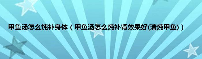 大家好,小科来为大家解答以上问题。甲鱼汤怎么炖补身体,甲鱼汤怎么炖补肾效果好(清炖甲鱼)很多人还不知道,现在让我们一起来看看吧!
