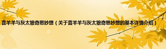 本文关于喜羊羊与灰太狼奇思妙想的基本详情介绍就讲解完毕,希望对大家有所帮助。