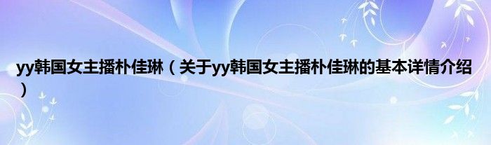 本文关于yy韩国女主播朴佳琳的基本详情介绍就讲解完毕,希望对大家有所帮助。