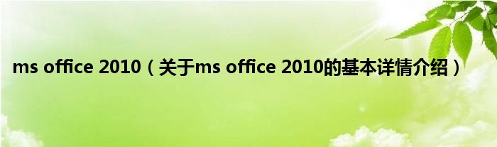 本文关于ms office 2010的基本详情介绍就讲解完毕,希望对大家有所帮助。