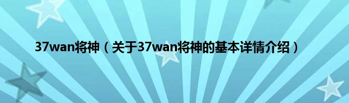 本文关于37wan将神的基本详情介绍就讲解完毕,希望对大家有所帮助。