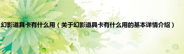 大家好我是小蝌蚪,幻影道具卡有什么用,关于幻影道具卡有什么用的基本详情介绍很多人还不知道,那么现在让我们一起来看看吧!