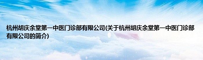 本文关于杭州胡庆余堂第一中医门诊部有限公司的简介就讲解完毕,希望对大家有所帮助。