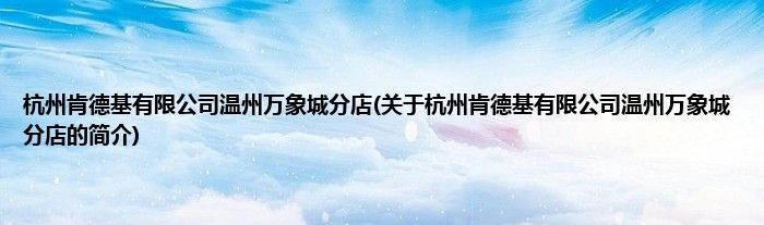 本文关于杭州肯德基有限公司温州万象城分店的简介就讲解完毕,希望对大家有所帮助。
