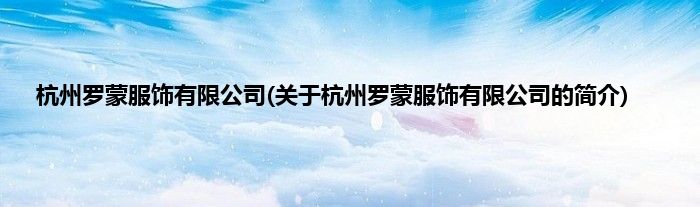 本文关于杭州罗蒙服饰有限公司的简介就讲解完毕,希望对大家有所帮助。