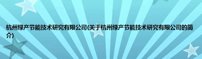 本文关于杭州绿产节能技术研究有限公司的简介就讲解完毕,希望对大家有所帮助。
