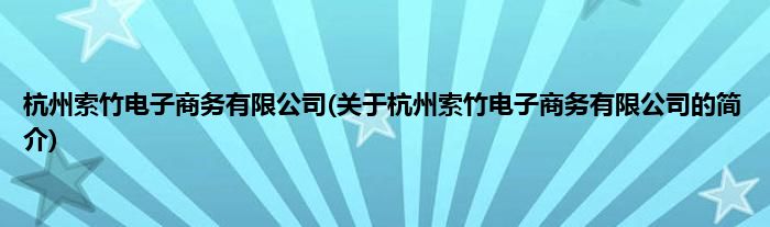 本文关于杭州索竹电子商务有限公司的简介就讲解完毕,希望对大家有所帮助。