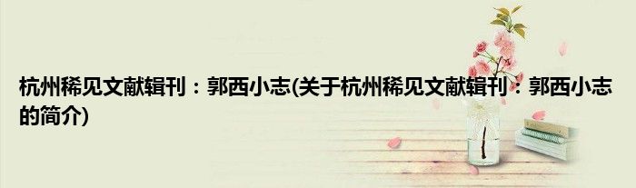 本文关于杭州稀见文献辑刊:郭西小志的简介就讲解完毕,希望对大家有所帮助。