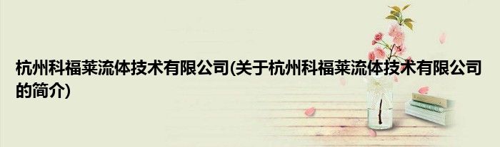 本文关于杭州科福莱流体技术有限公司的简介就讲解完毕,希望对大家有所帮助。