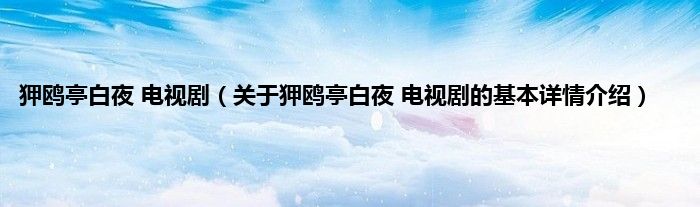 本文关于狎鸥亭白夜 电视剧的基本详情介绍就讲解完毕,希望对大家有所帮助。