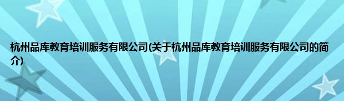 杭州品库教育培训服务有限公司(关于杭州品库教育培训服务有限公司的简介)