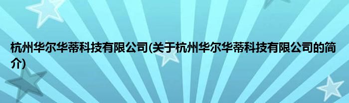 本文关于杭州华尔华蒂科技有限公司的简介就讲解完毕,希望对大家有所帮助。