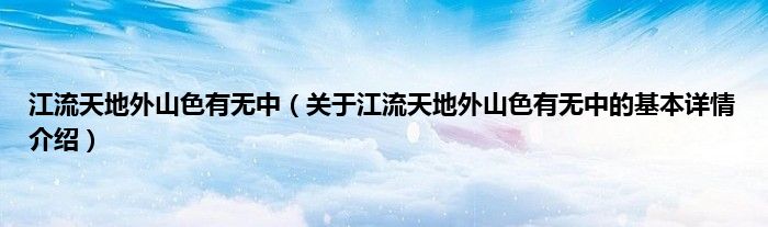 本文关于江流天地外山色有无中的基本详情介绍就讲解完毕,希望对大家有所帮助。