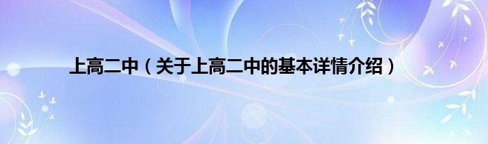 大家好我是小蝌蚪,上高二中,关于上高二中的基本详情介绍很多人还不知道,那么现在让我们一起来看看吧!