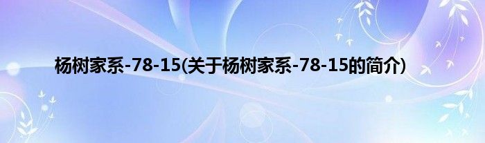 1、 杨树家系-78-15是属于杨柳科杨属植物,英文名yangshujiaxi-78-15,主要用途为材用。