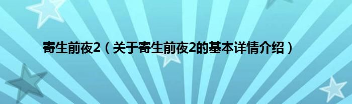 本文关于寄生前夜2的基本详情介绍就讲解完毕,希望对大家有所帮助。