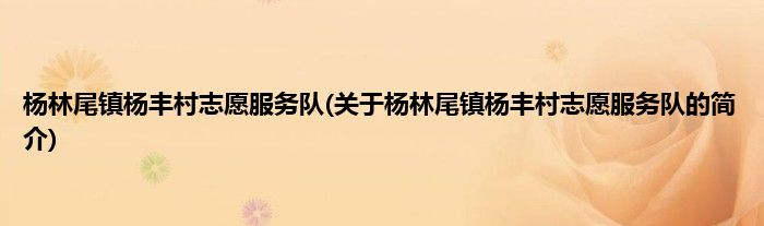 本文关于杨林尾镇杨丰村志愿服务队的简介就讲解完毕,希望对大家有所帮助。
