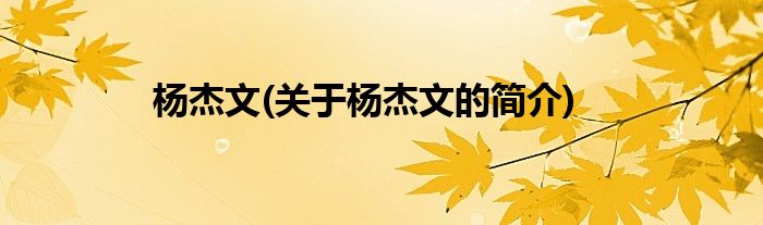 本文关于杨杰文的简介就讲解完毕,希望对大家有所帮助。