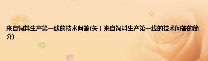 本文关于来自饲料生产第一线的技术问答的简介就讲解完毕,希望对大家有所帮助。