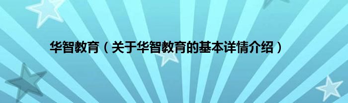 本文关于华智教育的基本详情介绍就讲解完毕,希望对大家有所帮助。
