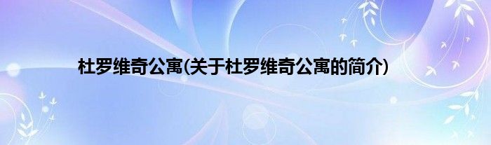 大家好,杜罗维奇公寓,关于杜罗维奇公寓的简介很多人还不知道,现在让我们一起来看看吧!