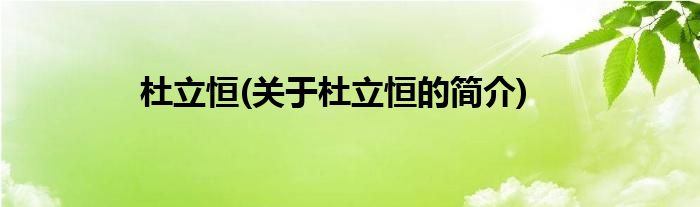本文关于杜立恒的简介就讲解完毕,希望对大家有所帮助。