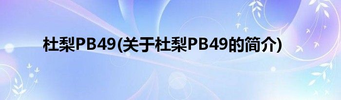 本文关于杜梨PB49的简介就讲解完毕,希望对大家有所帮助。