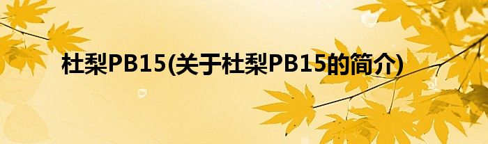 大家好,杜梨PB15,关于杜梨PB15的简介很多人还不知道,现在让我们一起来看看吧!