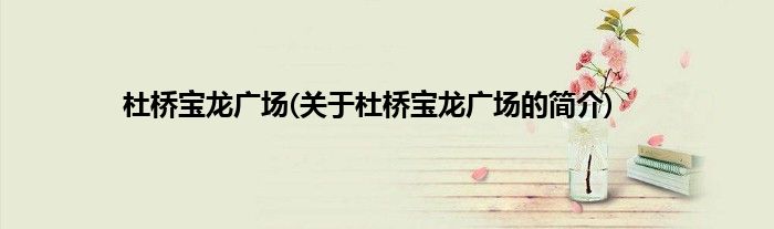 大家好,杜桥宝龙广场,关于杜桥宝龙广场的简介很多人还不知道,现在让我们一起来看看吧!
