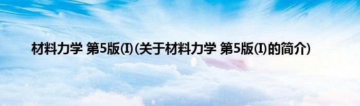 大家好,材料力学 第5版,I,关于材料力学 第5版,I的简介很多人还不知道,现在让我们一起来看看吧!