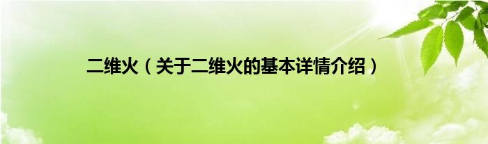 本文关于二维火的基本详情介绍就讲解完毕,希望对大家有所帮助。