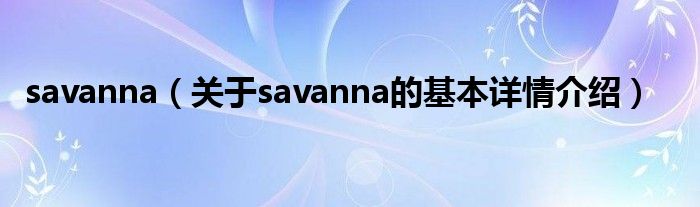 本文关于savanna的基本详情介绍就讲解完毕,希望对大家有所帮助。