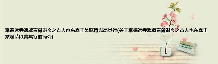 本文关于李德远寺簿敢言勇退今之古人也东嘉王某赋诗以高其行的简介就讲解完毕,希望对大家有所帮助。