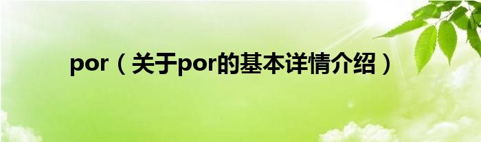 本文关于por的基本详情介绍就讲解完毕,希望对大家有所帮助。