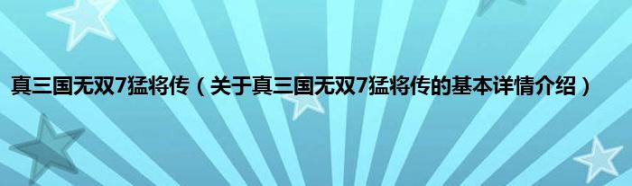 本文关于真三国无双7猛将传的基本详情介绍就讲解完毕,希望对大家有所帮助。
