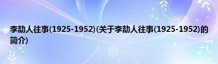 本文关于李劼人往事(1925-1952)的简介就讲解完毕,希望对大家有所帮助。