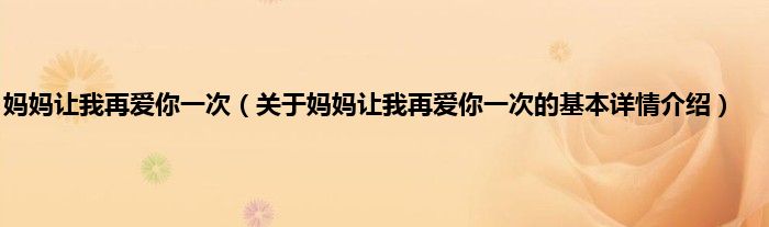 本文关于妈妈让我再爱你一次的基本详情介绍就讲解完毕,希望对大家有所帮助。