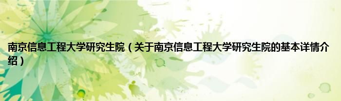 本文关于南京信息工程大学研究生院的基本详情介绍就讲解完毕,希望对大家有所帮助。