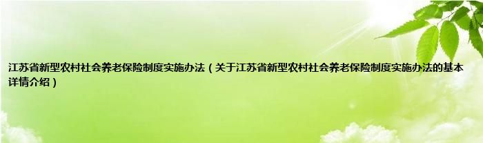本文关于江苏省新型农村社会养老保险制度实施办法的基本详情介绍就讲解完毕,希望对大家有所帮助。