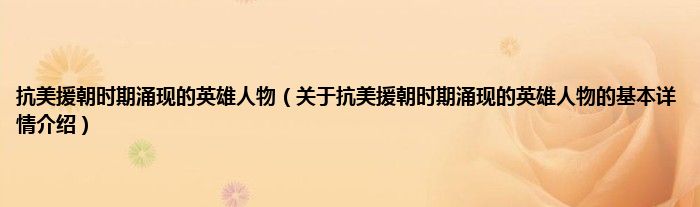 本文关于抗美援朝时期涌现的英雄人物的基本详情介绍就讲解完毕,希望对大家有所帮助。