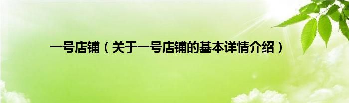 本文关于一号店铺的基本详情介绍就讲解完毕,希望对大家有所帮助。