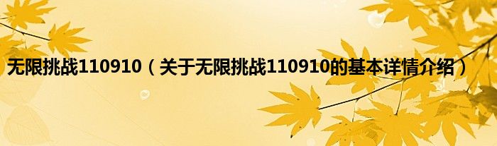 本文关于无限挑战110910的基本详情介绍就讲解完毕,希望对大家有所帮助。