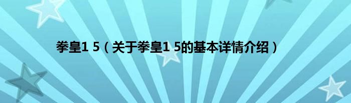 本文关于拳皇1 5的基本详情介绍就讲解完毕,希望对大家有所帮助。