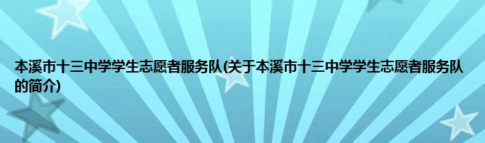 大家好,本溪市十三中学学生志愿者服务队,关于本溪市十三中学学生志愿者服务队的简介很多人还不知道,现在让我们一起来看看吧!