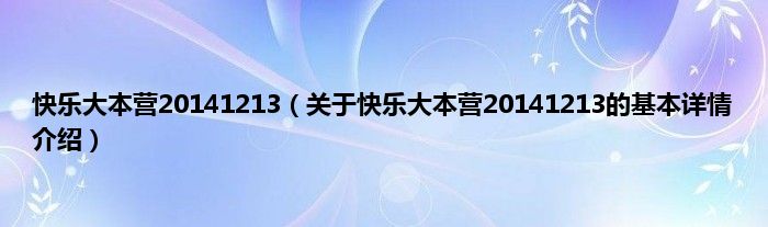 本文关于快乐大本营20141213的基本详情介绍就讲解完毕,希望对大家有所帮助。