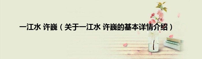 本文关于一江水 许巍的基本详情介绍就讲解完毕,希望对大家有所帮助。