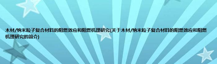 大家好,木材/纳米粒子复合材料的阻燃效应和阻燃机理研究,关于木材/纳米粒子复合材料的阻燃效应和阻燃机理研究的简介很多人还不知道,现在让我们一起来看看吧!