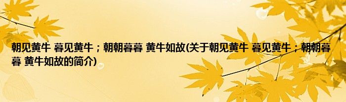 大家好,朝见黄牛,暮见黄牛;朝朝暮暮,黄牛如故,关于朝见黄牛,暮见黄牛;朝朝暮暮,黄牛如故的简介很多人还不知道,现在让我们一起来看看吧!