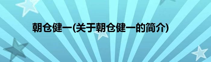 本文关于朝仓健一的简介就讲解完毕,希望对大家有所帮助。