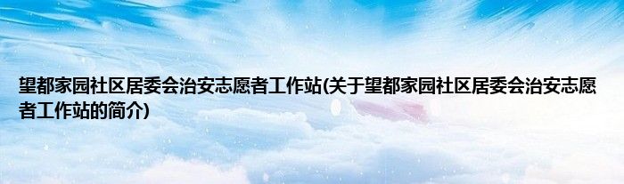 本文关于望都家园社区居委会治安志愿者工作站的简介就讲解完毕,希望对大家有所帮助。